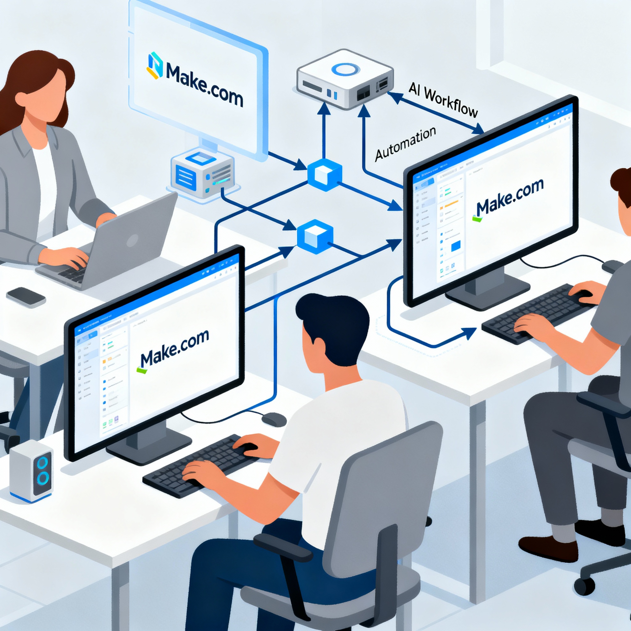 Make.com (ชื่อเดิม Integromat) เป็นเครื่องมือสร้าง Workflow Automation ที่ช่วยเชื่อมต่อแอปพลิเคชันต่าง ๆ เช่น Google Workspace, Microsoft 365, Slack, Shopify และอีกกว่า 2,700 แอป เข้าหากัน เพื่อให้ข้อมูลและกระบวนการทำงานระหว่างระบบต่าง ๆ เกิดขึ้นแบบอัตโนมัติ